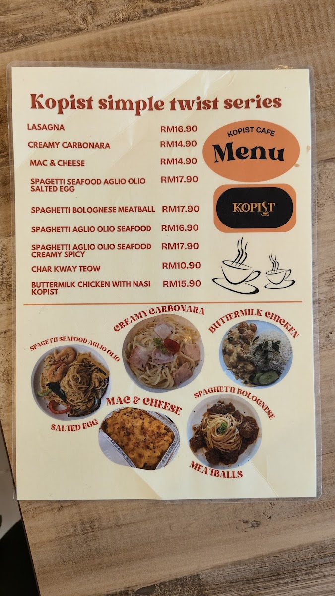 Welcome to Kopist, a cozy coffee shop located in Taman Greenwood, Batu Caves, Malaysia. This hidden gem offers a delightful array of delicious bites, making it an ideal destination for food lovers. The menu features a variety of mains, including marinated Lamb Chops, creamy Mac & Cheese, and hearty Nasi Bu, all designed to satisfy your palate.